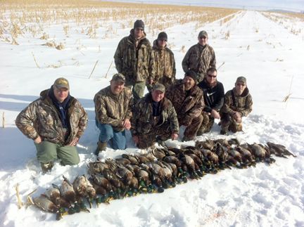 Duck hunts primarily take place over water. We have over 40 flooded corn ponds and many of these will never freeze over. We have numerous warm water hot springs that will always provide open water for the ducks. We also have moving water which is located near hundreds of acres of corn to keep the ducks fueled up. Lastly, there are many ponds that have aerator systems that push water to keep water open all season for the ducks.